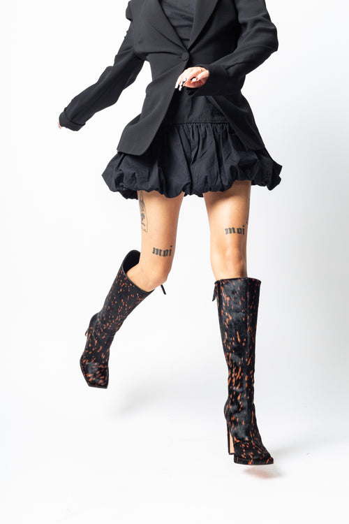 Now available in pony calf hair, each pair is crafted to soften and mould beautifully with wear. Lined in luxurious buttery leather lining, these boots only get softer and comfier with each wear. Dress them up or down, these versatile boots pair perfectly with skirts, dresses, jeans, or track pants. There's nothing that won't look good with Han!